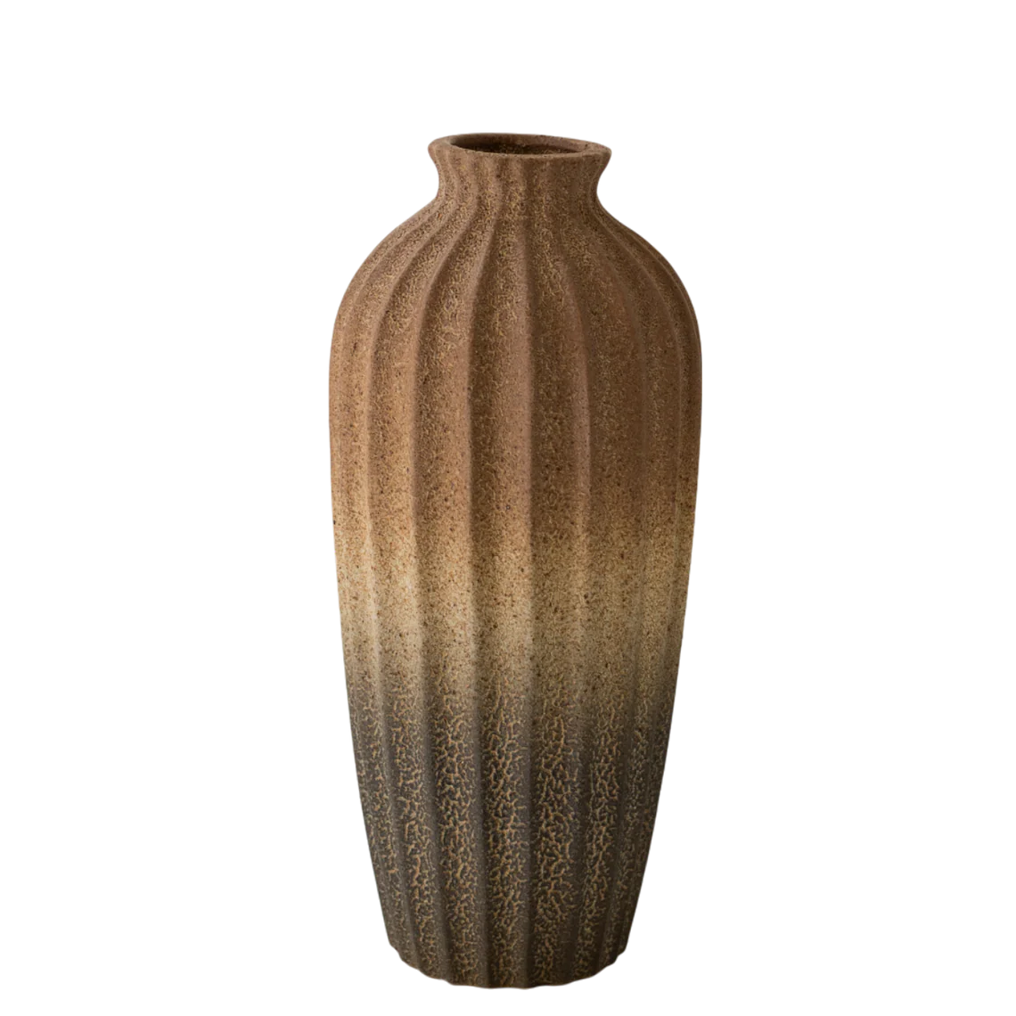Rooted in the essence of nature, the Hearthstone Vessel brings organic warmth and quiet beauty to any space. Its softly ribbed silhouette and weathered, earthen finish evoke the timeless artistry of hand-thrown pottery. Whether standing alone as a sculptural statement or cradling a bundle of dried stems, this piece whispers stories of rustic elegance and grounded grace.